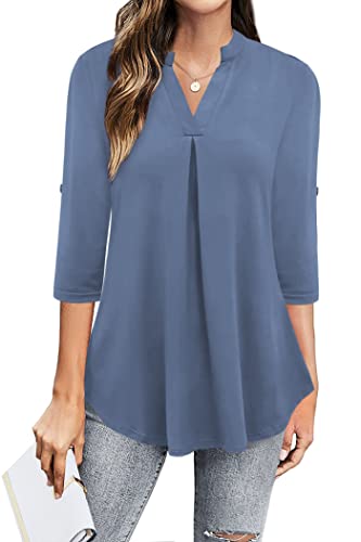 Ninedaily Womens Tops Dressy Casual 3/4 Sleeve V Neck Chiffon Shirt Work Blouses,Light Blue,Size Small