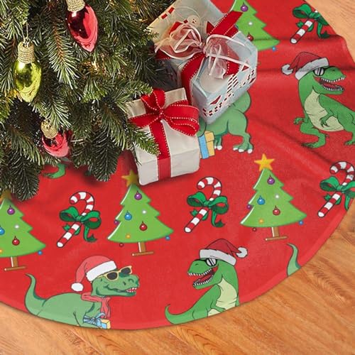 Cute Dinosaurs Red Christmas Tree Skirt 36 Inch Animal Tree Skirts Santa Mat for Mini Small Pencil Big X-mas Tree Farmhouse Ornaments Decorations