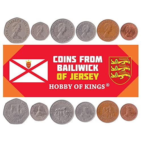 6 Coins from Jersey | Islander Coin Set Collection 1 2 5 10 20 50 Pence | Circulated 1980-1992 | Le Hocq Watch Tower | Elizabeth II | Seymour Tower | La Corbière Lighthouse | Grosnez Castle
