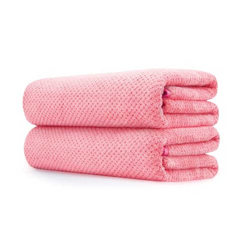 MaopaoBeauty Microfiber Bath Towel Set Pack of 2, 35 x 70 Inches - Light Thin Quick Drying Highly Absorbent Bath Towel for Bath, Fitness, Yoga, Travel, Sport and Shower (2PCS Hot Pink)