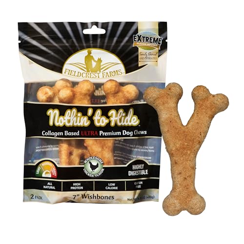 Fieldcrest Farms Nothin' to Hide Collagen-Based Dog Chews, Wishbone, Chicken Flavor, Ultra-Premium, for Dogs Over 50lbs, Easily Digestible, Supports Skin, Coat, Joints & Muscles, 7-Inch, 2 Pieces
