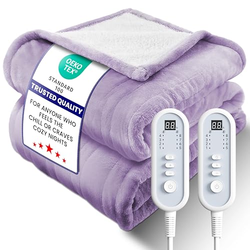 LEERUN Electric Heated Blanket King, Ultra‑Cozy Premium Flannel & Sherpa, Even Heat Distribution & Stable Temp, 1–10H Auto‑Off, 8 Temps (86–125.6°F), Overheat Protection, Ideal Gifts for Grandma