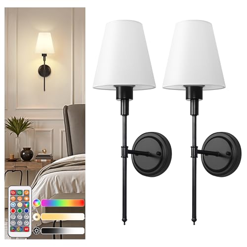DORESshop Battery Operated Wall Sconce Set of 2, Wall Light Wireless Easy to Install, Dimmable and Adjustable Sconces Wall Decor, Rechargeable Wall Lamp for Bedroom, Living Room, Black 18.7in
