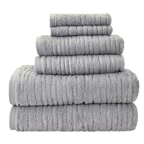 SKL Home CloudSoft Cotton Luxury 6 Pc Towel Set for Bath & Gift, Gray