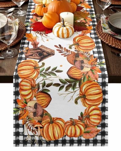 Fall Table Runners Orange Pumpkin Mushroom Thanksgiving Runners for Dining Tables Floral Leaves Plant Autumn Seasonal Dinner Runner Kitchen Party Table Decoration 13x72 Inch