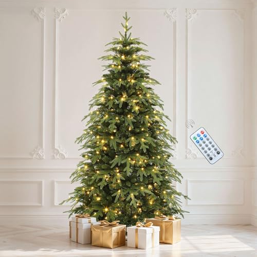 DWVO 6ft Prelit Christmas Tree with Lights, Full Downswept Artificial Fir Twinkle Christmas Tree with 1628 Metal Hinged Flame Resistant PE & PVC Branches and 300 Lights 11 Modes Remote Controlled
