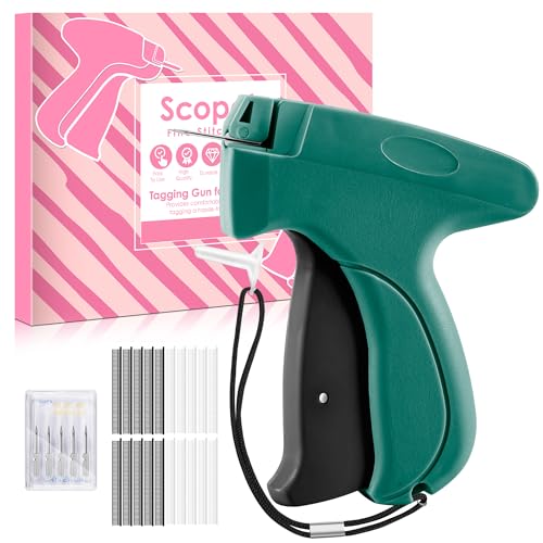 Stitch Gun for Clothes - Handheld Stitch Tag Gun Quick Clothing Fixer - Mini Sewing Kit Micro Tagging Gun - Includes 6 Needle, 1000 Black Fasteners & 1000 White Fasteners (Green-Black)