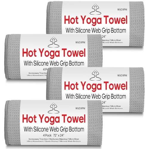 WUOXPM 4 Pack Hot Yoga Towel, Yoga Mat Towel with Grip Dots, Microfiber, Super Absorbent Towel Non-Slip for Hot Yoga, Exercise, Fitness, Pilates Gear
