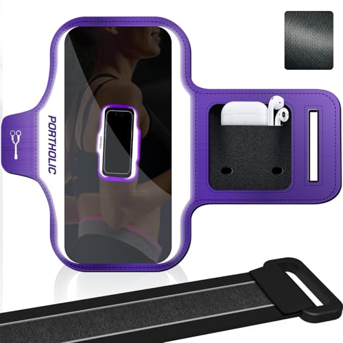 PORTHOLIC 2025 Running Armband Water Resistant Sports Phone Holder Case with Extension Strap,Card Slot Up to 6.9" Phone for iPhone 17/16/15/14/13 Plus Air Pro Max XR/XS, Galaxy S25/24/S10