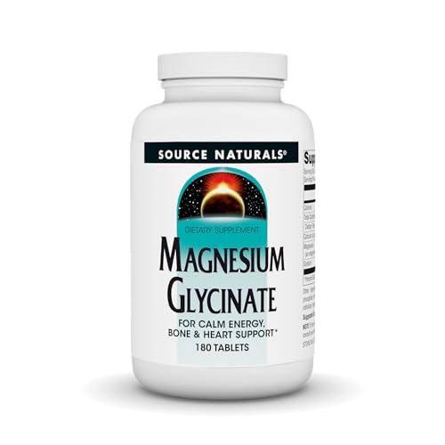Source Naturals Magnesium Glycinate, Chelated for high Absorption | for Calm Energy, Bone & Heart Support*, 200 mg per Serving - 180 Tablets