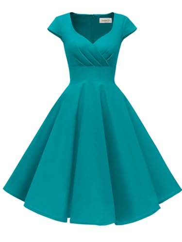 Hanpceirs Women's Cap Sleeve 1950s Vintage Party Dress Cocktail Dress Formal Dresses with Pocket Turquoise XXX-Large