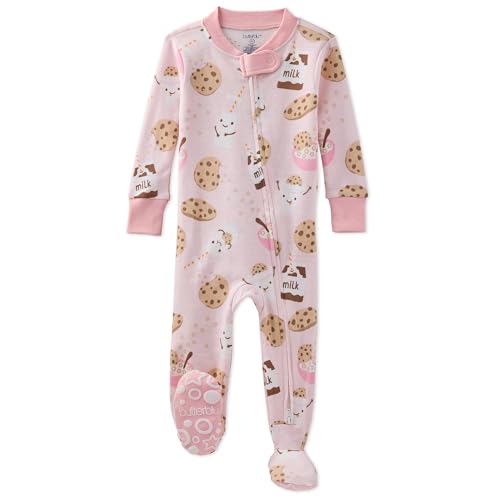 Butterblu Cruz Snug-fit Footed Pajamas 100% Organic Cotton Zip Front Sleeper PJs w/Grippers for Baby Girls, Pink Milk N' Cookie Crew, 24 Months