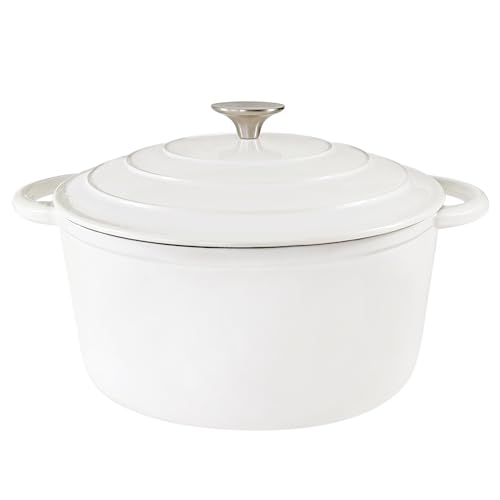 Dutch Oven,Cast Iron Dutch Ovens,Dutch Oven Pot with Lid,5 QT Enamel Dutch Pot,Dutch Ovens with Dual Handles,Cast Iron Pot for Braiser,Cooking,Gifts for Family,White