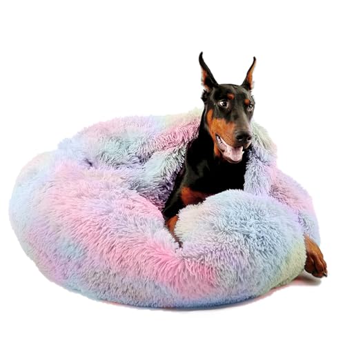 Himax Dog Beds for Large Dogs, Donut Dogs Beds with Blanket Attached, Calming Round Dog Bed Washable(20"/26"/35") Multicolor