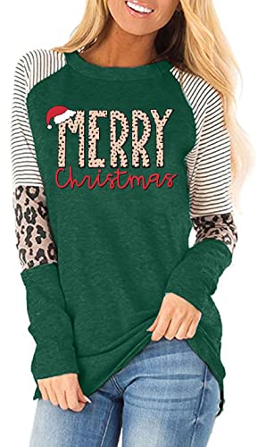 Merry Christmas Shirts Women Christmas Long Sleeve Blouse Leopard Print T Shirt Xmas Striped Fall Tee Tops
