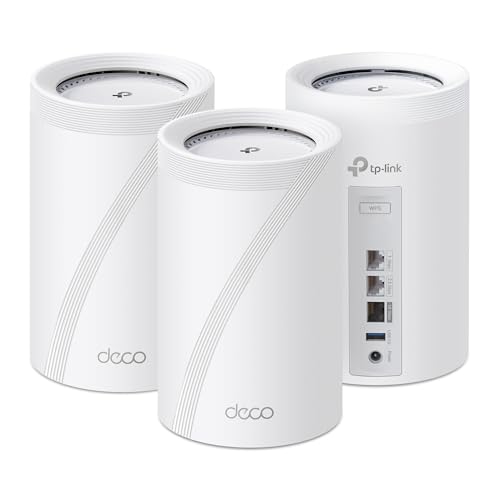 TP-Link Deco BE67 Tri-Band WiFi 7 BE14000 Whole Home Mesh System | 8-Stream 14Gbps | 1×10G+1×2.5G Multi-gig Wired Backhaul | Up to 8100 Sq.ft | VPN, HomeShield, MLO, 320 MHz, AI-Roaming (3-Pack)