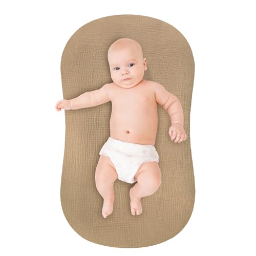 Pea Pod Baby Lounger Cover Muslin Cotton Slipcover Compatible with Snuggle Me Lounger - Soft Breathable Infant Lounger Covers Only for Newborn Baby Nest Lounger Sheets for Cozy Naps 0-12 Months(Brown)