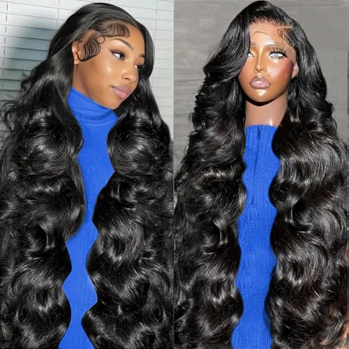 32 Inch 13x6 Lace Front Wigs Human Hair Pre Plucked 200% Density Body Wave Lace Front Glueless Wig human hair with Baby Hair for Women Natural Black