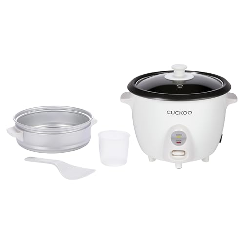 CUCKOO One Touch Rice Cooker 12-Cup Cooked, Small Rice Cooker & Warmer with Steamer Tray, Versatile Grain Cooker, Soup Maker, Auto Keep Warm, 6-Cup Uncooked, White (CR-0601C)