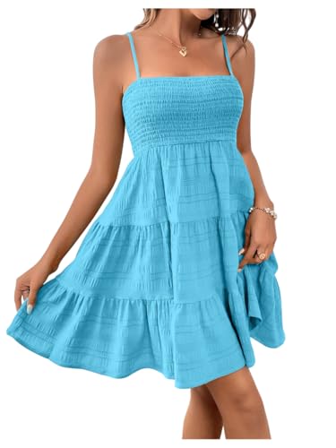 SOLY HUX Women's Sundress Smock Cami Mini Dress Sleeveless Swing A Line Short Dresses Casual Cute Summer Dresses Mint Blue Small