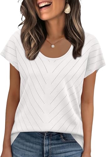 WIHOLL Womens Tops Cap Short Sleeve Sweater Basic Summer Tops Crew Neck T Shirts Flowy Business Casual Outfits Work 2025 Trendy Travel Holiday Outfits Beach Vacation Clothes Cruise Resort Wear White S