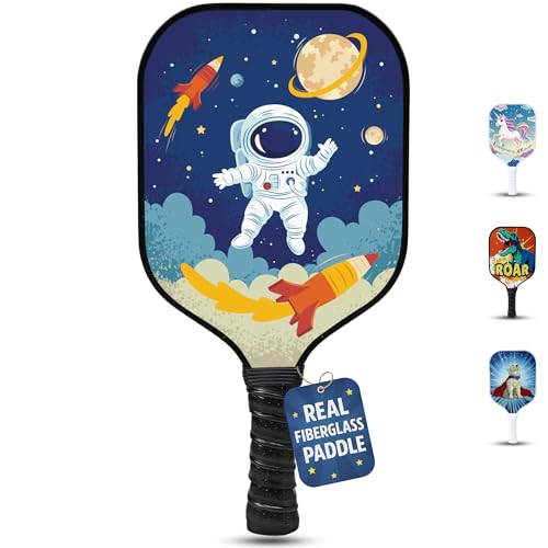 Dany x Kevin Kids Pickleball Paddle – Astronaut & Galaxy Design for Ages 3–12 | Lightweight Fiberglass (0.37 lbs) | Small, Comfy Grip | Fun Beginner Gift for Boys, Girls, Toddlers & Youth
