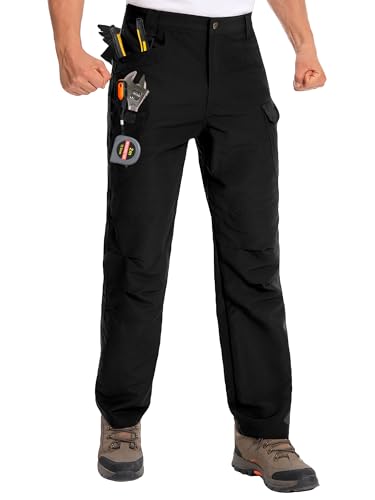 Holure Men‘s Tactical Pants Water Resistant Ripstop Cargo Pants Inseam 32'' Carpenter Utility Trousers with Tool Pockets Black 02-L