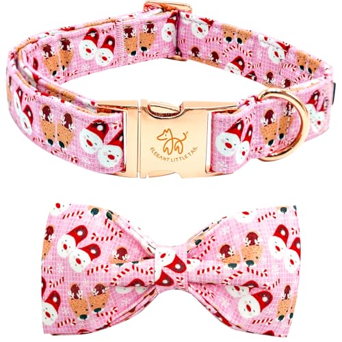 Elegant little tail Christmas Dog Collar, Christmas Deer Print Pet Collar Dogs Holiday Collars with Bow Pink Cute Winter Girl Puppy Bow Adjustable Pet Collars for Small Puppy