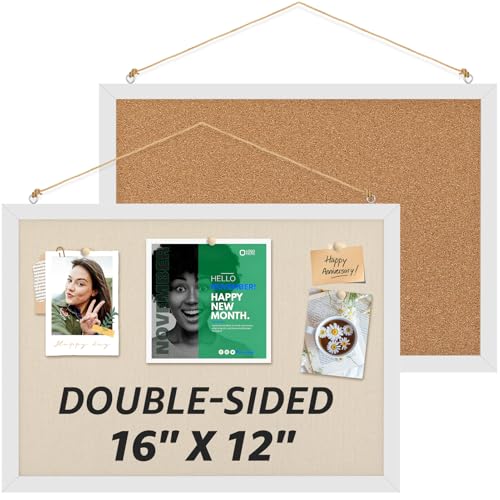 MaxGear 2 Pack Double-Sided Cork & Linen Boards, 16" x 12" Bulletin Board with White Frame, CorkBoards for Wall, Vision Board for Girls Room, Office, Bedroom, Kids Room, Classroom