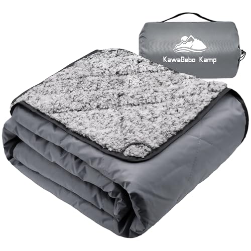 KawaGebo Kamp Sherpa Warm Outdoor Camping Blanket - Waterproof Stadium Blanket for Cold Weather, Camp, Sports Mom and Concert - Camping Quilt 80" X 58" (Gray)