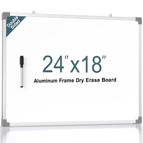 MaxGear White Board for Wall, 24" x 18" Magnetic White Board, Aluminum Frame, Double-Sided Hanging Whiteboard, Portable Dry Erase Board for Planning Drawing Memo to Do List School Home Office