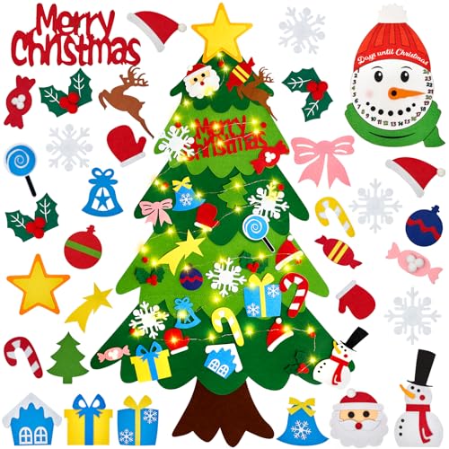 Noiclub 3.6 ft DIY Felt Christmas Tree for Toddlers,2025 Advent Calendar with 32 Removable Ornaments Wall Hanging Xmas Gift Decoration with String Lights (Batteries Not Included)