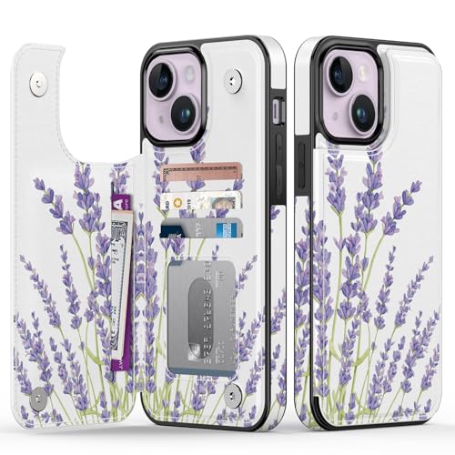 Goodon for iPhone 15 Plus Case Wallet - Flip Folio Leather Cover with Trendy Floral Design, 4 Card Slots & Kickstand Function, Stylish Protective Phone Case for Women and Girls - Purple Lavender