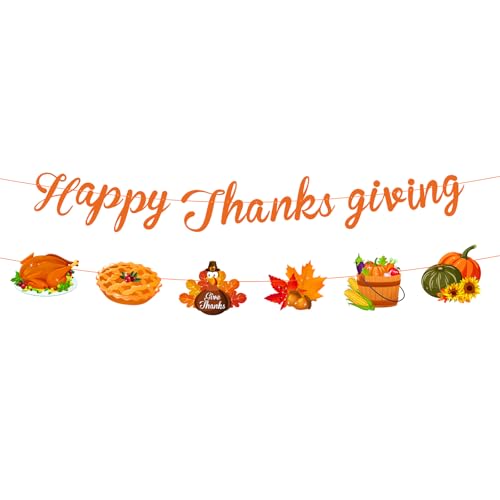 Lecheme Thanksgiving Decorations Happy Thanksgiving Banner Fall Harvest Turkey Pumpkin Give Thanks Hanging Banner & Signs Party Supplies Autumn Garland for Wall Home Decorations