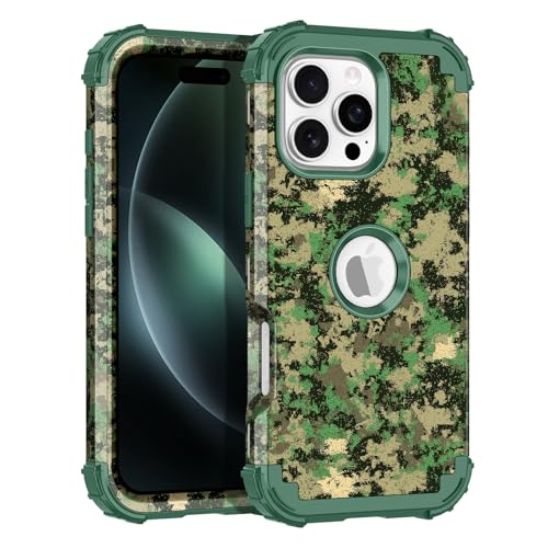LONTECT for iPhone 16 Pro Case Glow in The Dark Three Layer Heavy Duty Shockproof Hard PC+Soft Silicone Rugged Full Body Protective Case for Women Girls,Camouflage