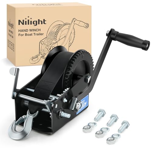 Nilight Boat Trailer Winch 3500 Lbs Hand Crank Winch Heavy Duty Boat Winches with 33Ft Strap Rope Hook Two Way Ratchet 4:1 8:1 Gear Portable Marine Manual Winch for Trailers Boat RV ATV Jet Ski Towing