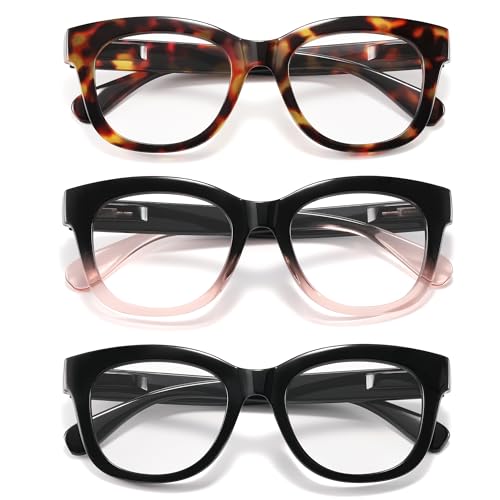 kunchu Reading Glasses for Women - Oprah Blue Light Reading Glasses with Spring Hinge, Anti-Glare/Eyestrain Computer Readers (3 Pack, 1.0X)
