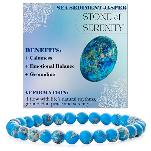 Bivei Sea Sediment Jasper - Serenity - 6mm Beaded Bracelets for Women Handmade Semi Precious Natural Stone Stretch Elastic Jewelry Stocking Stuffers for Women Yoga Protection Gifts Small