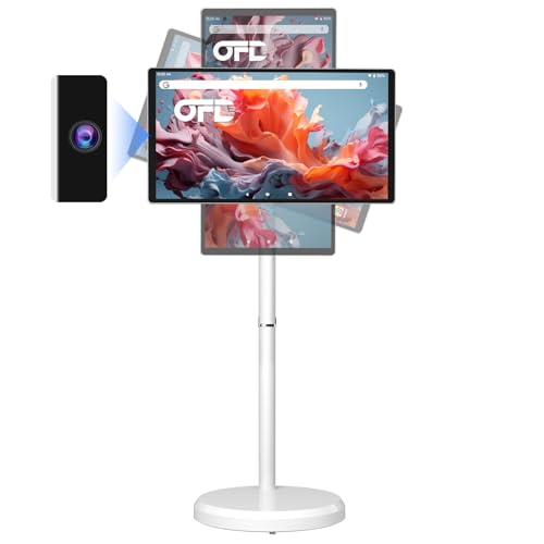 OFD 22 inch Smart Portable TV on Wheels,100%sRGB,1080P,6GB RAM+128GB Storage,Android 13 OS,Built in 8MP Webcam,6000 mAh Battery,Rolling TV Touchscreen Monitor 4-6H Play Time,Full Swivel Rotation,White
