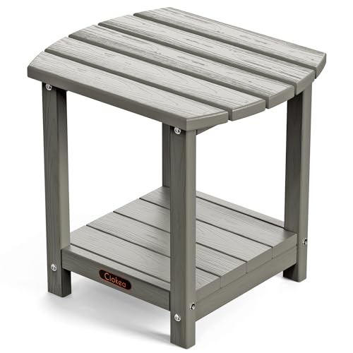 Ciokea Adirondack Outdoor Side Table, 2-Tier Sturdy Patio End Table Weather Resistant, Morden Side Table for Patio, Pool, Porch, Grey