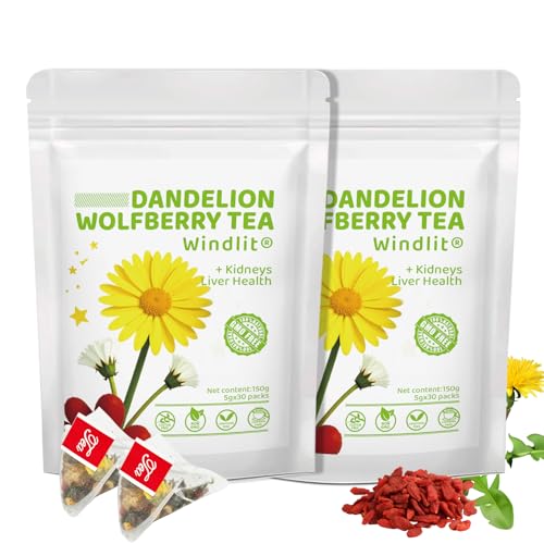 Dandelion wolfberry Tea-60 Bags Ten Natural Ingredients for Kidneys & Liver Health, Eye Health & Digestion – Detox Tea with Chrysanthemum, Organic Dandelion Wolfberry Tea