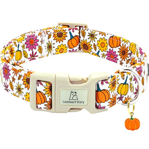 Lionheart glory Fall Dog Collar-Halloween Pumpkin Floral Dog Collars with Cute Ghost Pendant Soft Adjustable Collar for Small Dogs Female Male Collars Party Pet