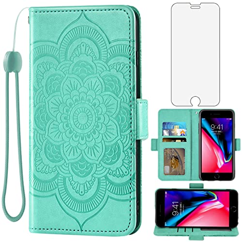 Asuwish Compatible with iPhone 7plus 8plus 7/8 Plus Wallet Case and Tempered Glass Screen Protector Leather Flip Card Holder Cell Phone Cover for i Phone7s 7s + 7+ 8s 8+ Phones8 7p 8p Women Men Green