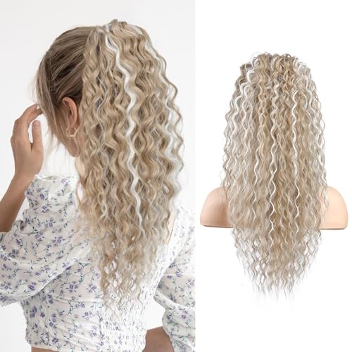 SEIKEA Ponytail Extension, PT005 Isabella 22" Long Bohemian Curly Drawstring Ponytail, Light Fluffy Multi-Layered Clip in Hair Extensions, Natural Soft Synthetic Hairpiece, Medium/White Blonde