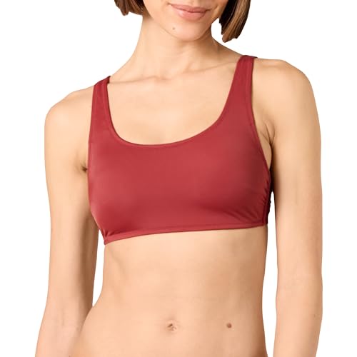 Amazon Essentials Women's Scoop Neck Swim Crop Top, Brick Red, Small