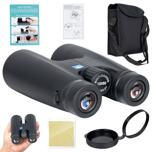 12x50 HD Binoculars for Adults High Powered, HD Large View Binoculars with Clear Low Light Vision, Lightweight Waterproof Binoculars for Bird Watching Hunting