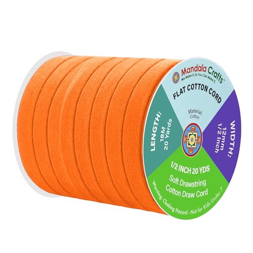 Mandala Crafts Orange Flat Drawstring Replacement, 1/2 Inch 20 Yds Orange Soft Drawstring Cotton Draw Cord Hoodie Sweatpants Drawcord Replacement