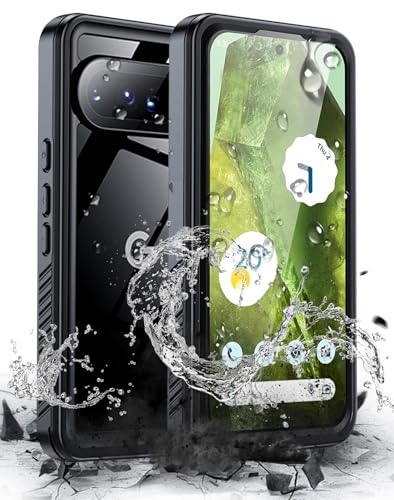 Hualele Pixel 9 Case Waterproof Built-in Screen Protector and Lens Protector, IP68 Underwater Rugged Full Body Shockproof Anti-Scratched Durable Phone Case for Google Pixel 9 Black/Clear