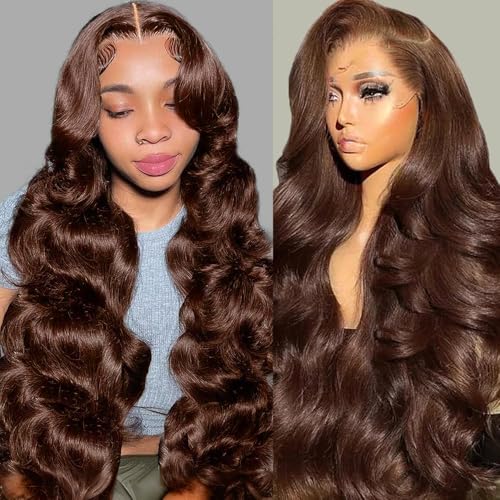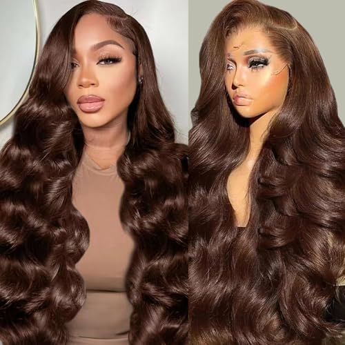 KOTTN 34 Inch Chocolate Brown Body Wave Lace Front Wigs Human Hair 200% Density 13x6 HD Lace Frontal Wigs Human Hair Pre Plucked with Natural Hairline Brown Wigs For Women