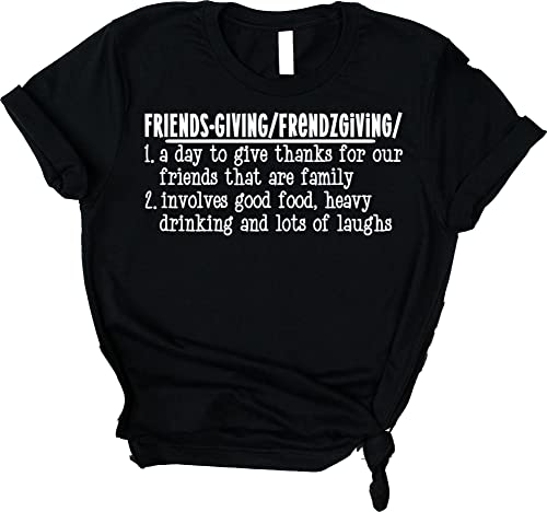 Friendsgiving Shirt, Black Thanksgiving Shirts, White Lettering, Friendship Shirt, Friendsgiving Definition Shirt, Gift for Her, Unisex Thanksgiving T-Shirts, Women (L)